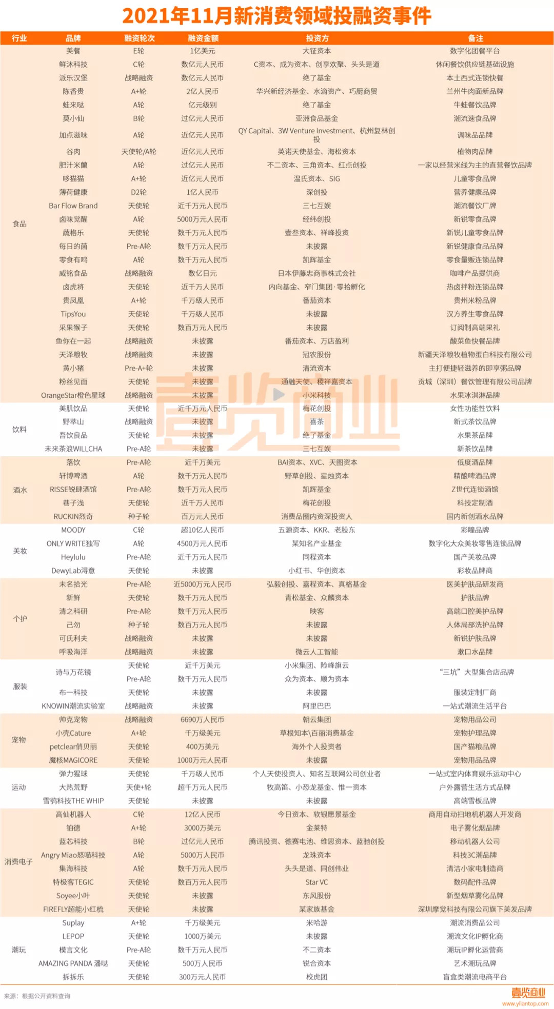附:2021年11月新消费融资事件