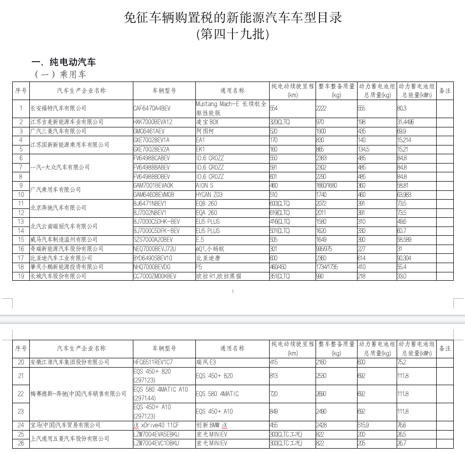 12月8日,工信部网站公告《免征车辆购置税的新能源汽车车型目录》(第四十九批)。