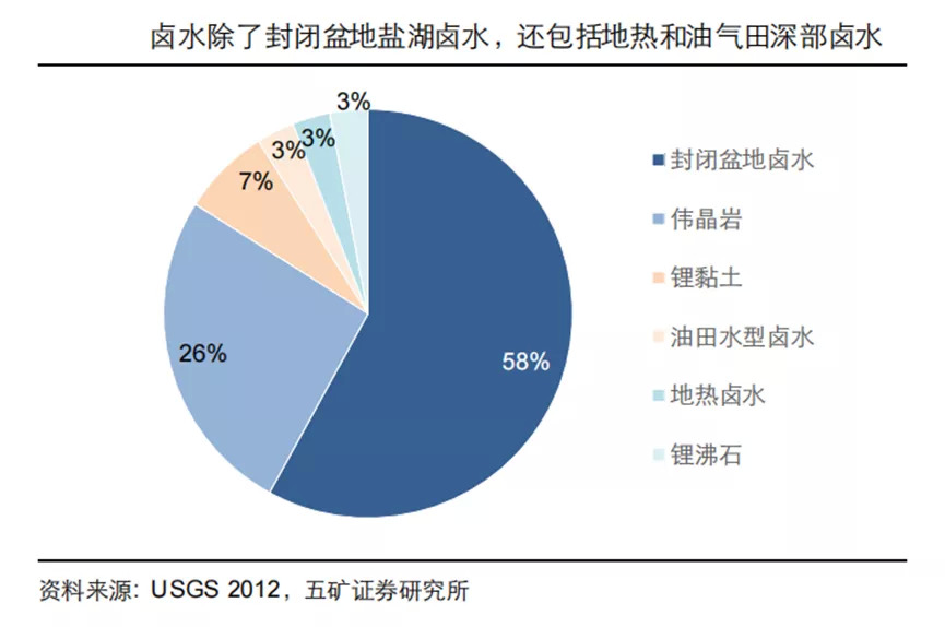 为方便理解,我们大体可以把全球锂资源分为两类,一类是盐湖卤水,一类是锂矿石,前者占据了大概60%的份额。