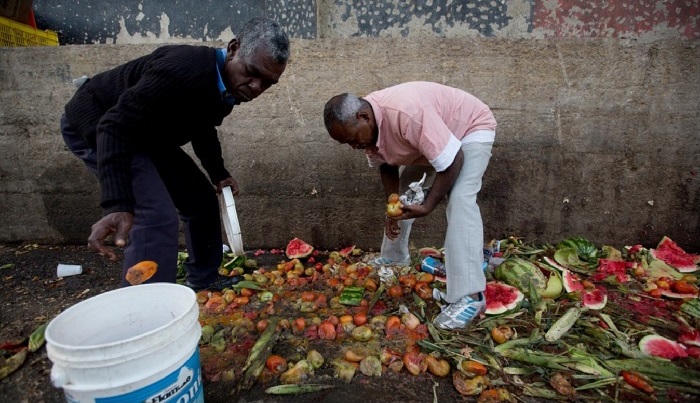 而在城市的另一边,失业者们每天晚上都聚集在一起,在加拉加斯市中心的一个垃圾堆寻找被附近商店扔掉的烂水果和烂蔬菜。