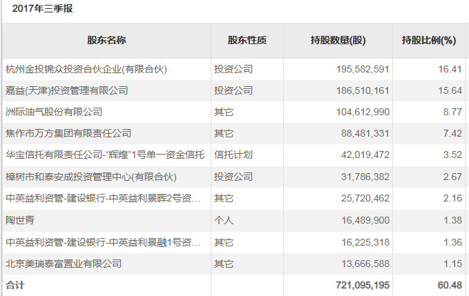 嘉益投资则于2016年11月开始从二级市场买入焦作万方股票,到12月26日越过5%举牌线;到2017年3月31日,嘉益投资已经是上市公司当时持股比例为15.64%的第二大股东。