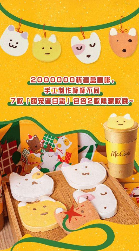 去年,麦当劳在大薯日就发布了一组变猫神器——喵喵薯夹。再到最近,麦当劳旗下的麦咖啡推出了只送不卖的萌宠盲盒蛋白霜,购买任意麦咖啡大杯饮品即可随机获得,全国限量200万份。