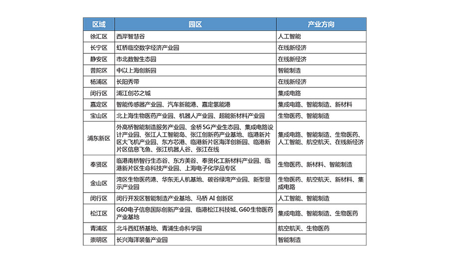 上海市特色产业园列表