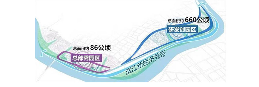 上海杨浦区在线新经济生态园(长阳秀带)布局“一带两区”,规划总用地面积11190亩,可开发用地3750亩(250公顷)。一带为沿15.5公里的黄浦江岸线一带,建设融生态带、文化带、创新带三维一体的滨江新经济秀带,推进新技术、新模式、新业态率先落地。两区分别为杨浦滨江地区的南段和北段,南段的“总部秀园”区从杨浦大桥至上海国际时尚中心区域,北段的“研发创园”区为军工路以东的带状片区。