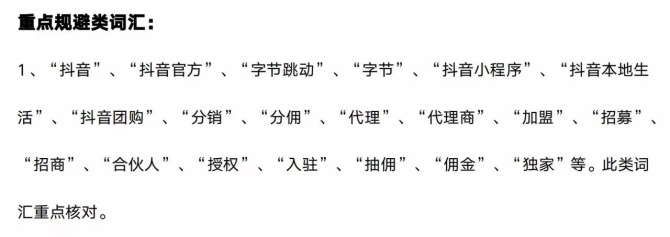 以上很多词汇难免被第三方服务商用来宣传自己,上述字节运营表示,对于这些词汇的审核虽然一直都有,但最近限流明显。若认证了企业号,则可以被正常推荐,这也说明抖音有意促进商家通过官方渠道参与团购业务。