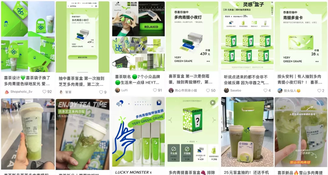 以刚推出的#多肉青提色#联名活动为例,喜茶的思路是: