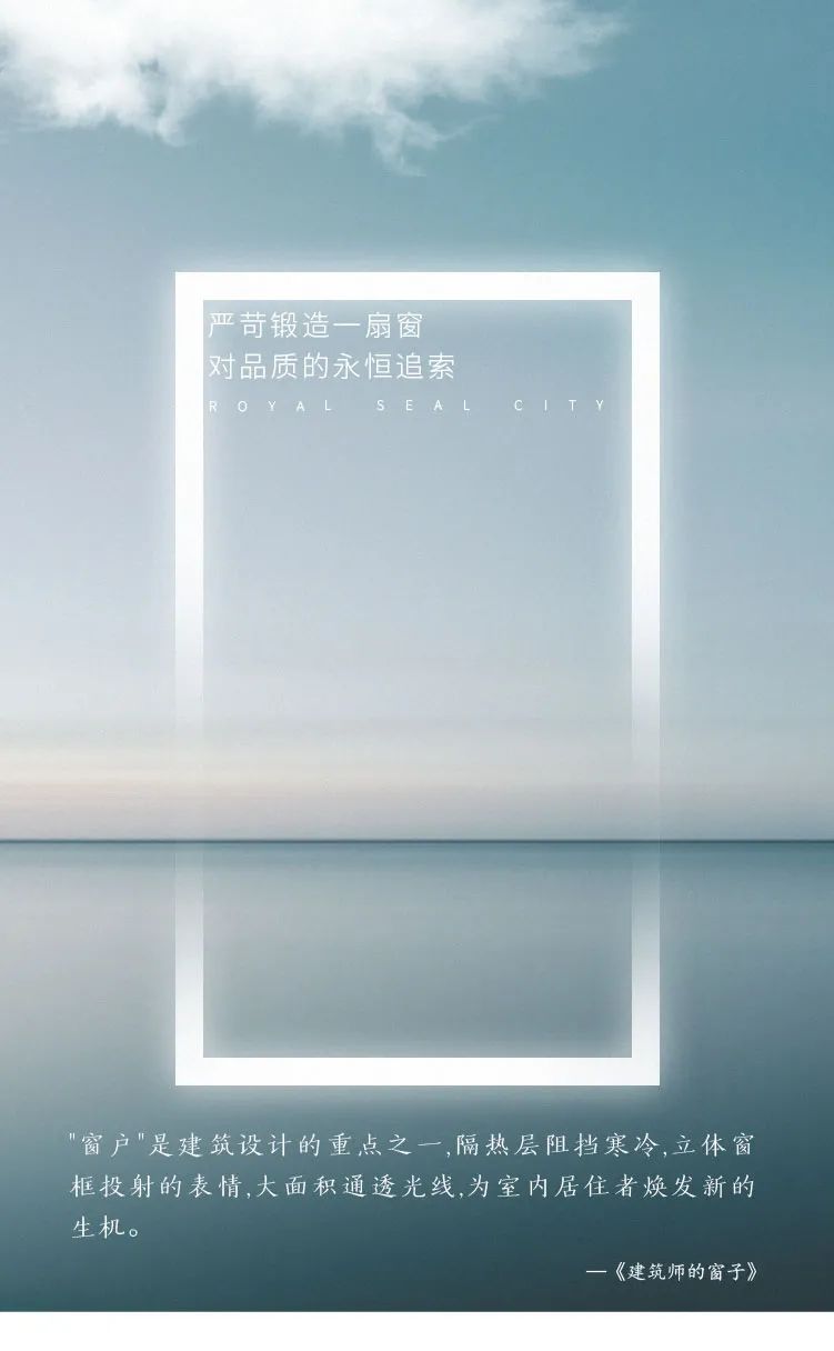 在银丰·玖玺城,品质从来不是一句口号,它是不惜成本和时间的昂贵品位,也是追寻器物精神的锲而不舍,更是一座200万方山海大城伟岸的世界观。风华永驻的城市界面之上,银丰·玖玺城用一扇扇窗构建起了当代人居的信仰,它们不会因岁月流逝而黯淡,只会历久弥新,光辉熠熠。