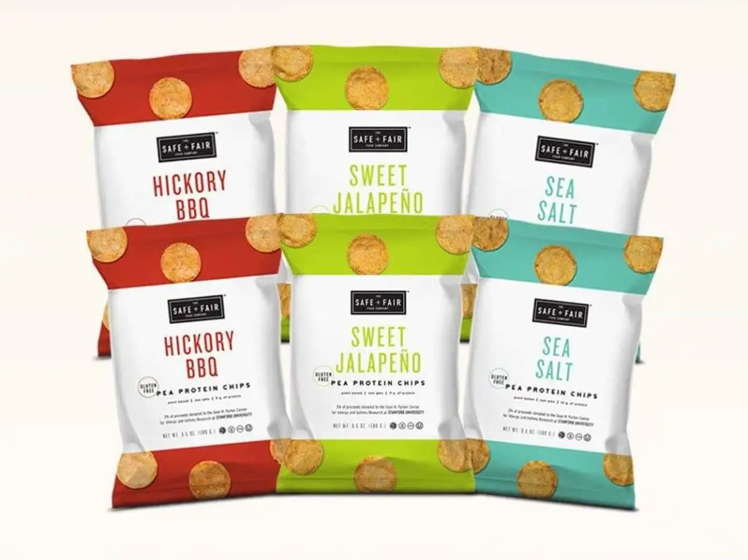 国外品牌Safe+Fair推出了三款豌豆蛋白脆片,包括海盐味、甜墨西哥胡椒味和山核桃烧烤味,蛋白脆片采用豌豆蛋白、扁豆粉、马铃薯淀粉、玉米粉制成,每份含有9-10g植物蛋白。