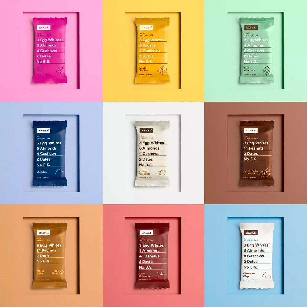 美国蛋白质零食品牌RXBAR,主打产品为含有12g蛋白质的蛋白棒,适合外出人群在旅途中享用、健身爱好者在运动补充能量,也适合作为儿童的健康零食。产品采用清洁配方,每个蛋白棒的包装上都会清晰地标出成分。