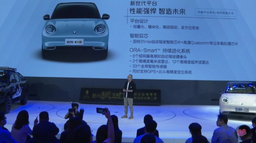 另一个佐证是,去年11月底,欧拉好猫正式上市时,官方对外发布的新闻资料中,明确写明欧拉好猫的最大卖点是长城汽车旗下首款柠檬平台架构+咖啡智能生态的纯电动车,智能搭载系统搭载的是英特尔芯片,当时并没有提及和宣传过好猫的车机搭载的是高通8155芯片。