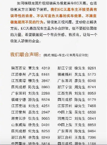 最著名的就是盲订极氪001的准车主们,在今年下半年接连遭遇提前涨价,临时将说好的诸如800V电池充电系统,WE版本车型后排隐私玻璃,EC可调天幕,高扭矩的日本电产电机等标配变成了选配甚至改成简配。