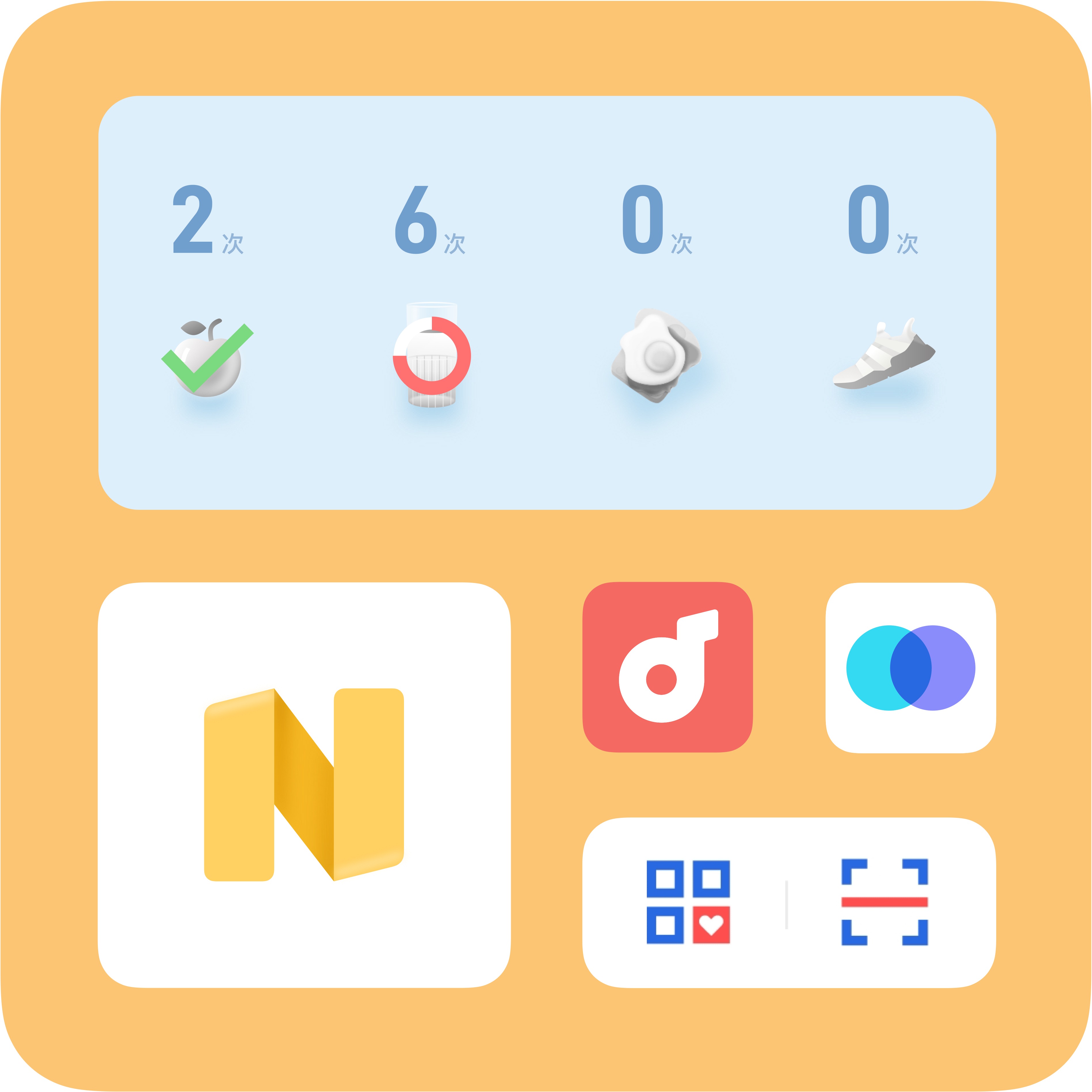 接着是各类桌面的组件,都可以集成到一个文件夹内,更加方便整理,此外,用户也可以自定义文件夹的颜色。