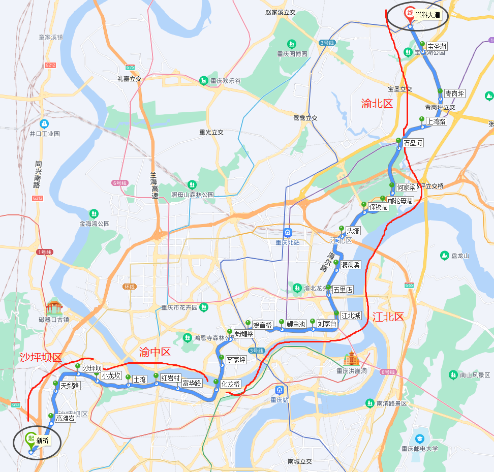 其中,沙坪坝站与1号线、环线换乘;