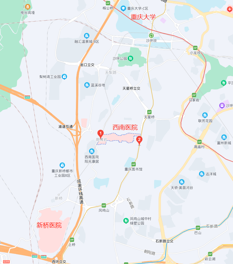 在沙坪坝区,9号线经过新桥、高滩岩、天梨路、沙坪坝、小龙坎五个站点。医疗资源方面汇聚了西南医院、新桥医院;商圈有沙坪坝商圈;教育资源有重大、川外;周边还有磁器口、温泉城等多维城市配套。