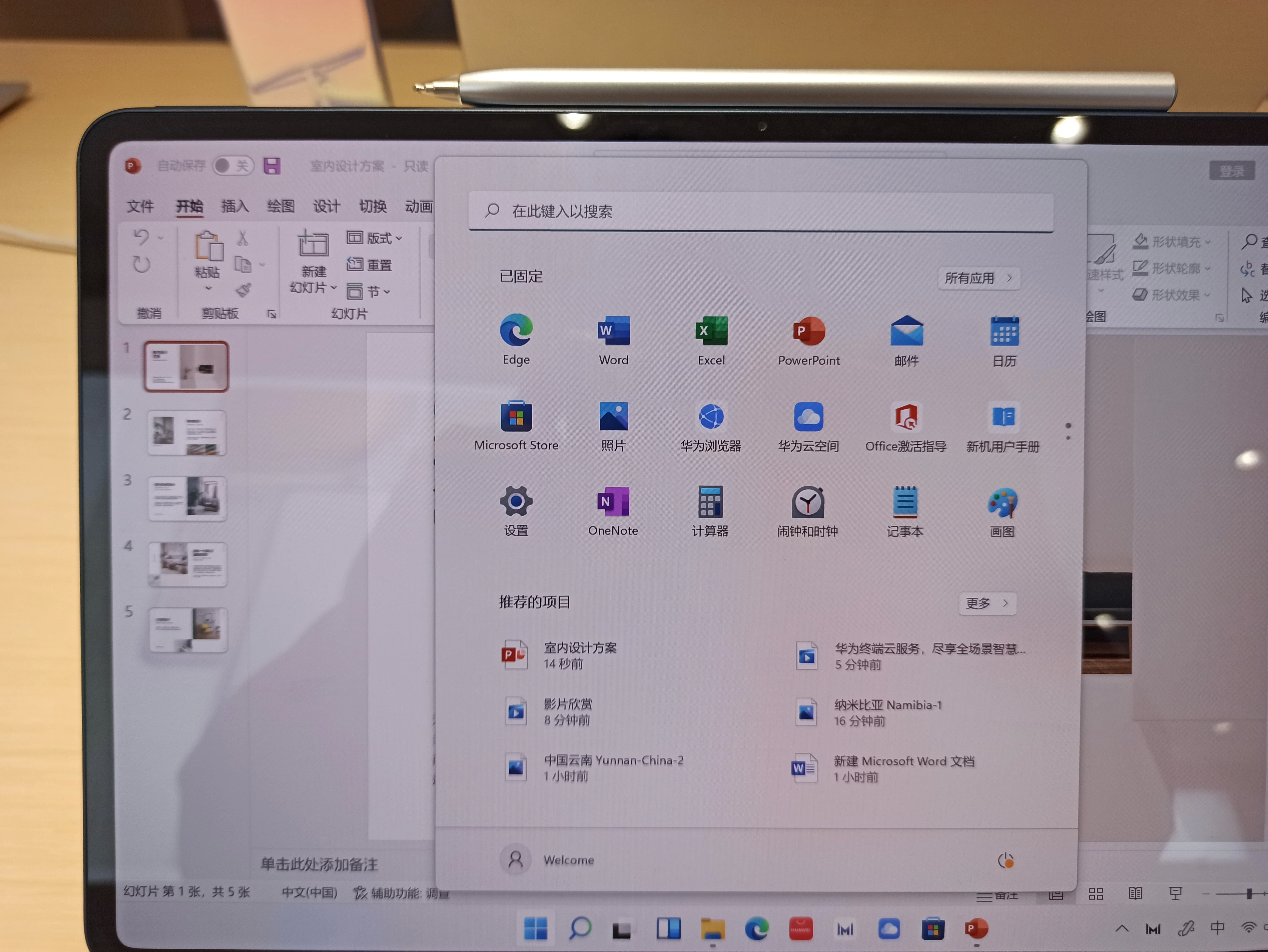 MateBook E 2021 的工业设计基本和 MatePad Pro 一致,但在个别地方更优,就比如屏幕边框。5.6mm 等距微边框让它的屏占比达到 90%。而且,这个边框可以容下摄像头,让屏幕本身变得方正,不需要刘海。