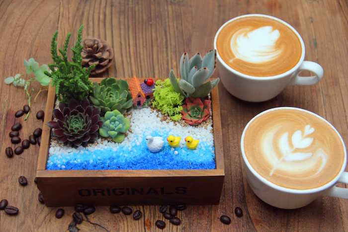 “当咖啡遇到多肉”最早的确是一家标准的咖啡店,但店铺经营状况一直不好,直到2014年年底,老板夏野为咖啡店引入了当时正在兴起的DIY多肉盆栽的概念,将多肉微景观DIY体验课和咖啡等饮料打包做成套餐销售,店铺才算迎来了第二春。