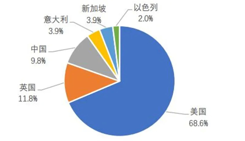 在 2020 年人工智能会议中,获得最佳论文奖项的论文共计 13 篇,参与作者共计 51 人。从所属国家来看,最佳论文的作者分别来自美国、中国、英国、意大利、新加坡以及以色列。其中美国获得会议最佳论文的作者有 35 位,占比最高,达到 68.6%,分别来自于斯坦福大学、加州大学伯克利分校、普林斯顿大学等高校以及 OpenAI、谷歌研究等企业研究部门,数量远超其他国家。中国获得顶级学术会议最佳论文的作者数量占比达 9.8%,位于第三。