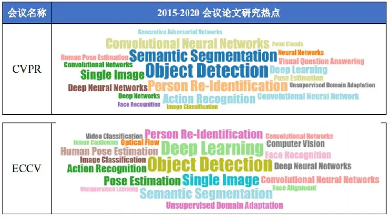 ▲计算机视觉顶会 CVPR 与 ECCV 会议论文近年研究热点词云图