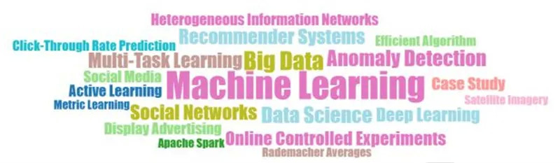 人工智能数据挖掘领域知名的国际顶级会议是 KDD。通过分析 KDD 会议论文数据,发现数据挖掘领域研究热点近年来主要是以大数据(Big Data)、社交网络(Social Networks)、社交媒体(Social Media)、异构信息网络(Heterogeneousinformation network)等为研究对象,通过采用机器学习(Machine Learning)之中的深度学习(Deep Learning)、多任务学习(Multi-Task Learning)、主动学习(Active Learning)等方法,关注涉及了数据科学(Data Science)、推荐系统(Recommendation Systems)、异常检测(Anomaly Detection)、显示广告(Display Advertising)、点击率预测(Click-Through Rate Prediction)、高效算法(EfficientAlgorithm)等问题。