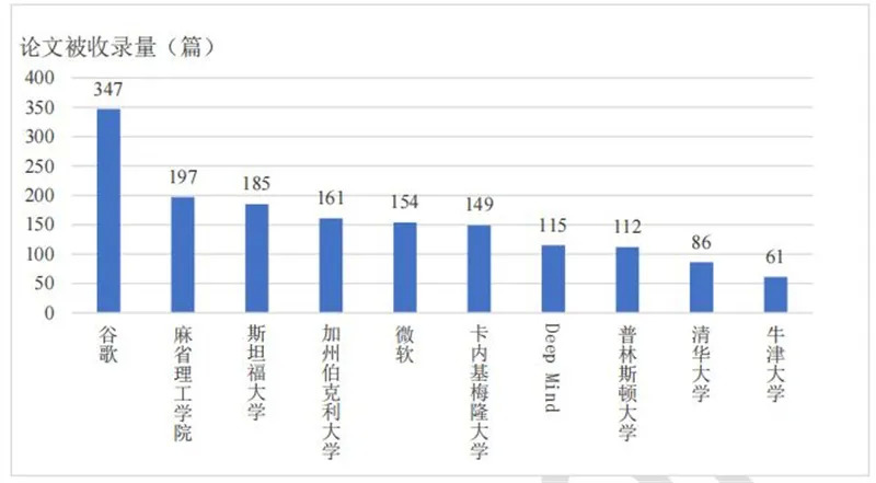 ▲机器学习国际三大顶会 2020 年论文被收录总量 TOP10 机构