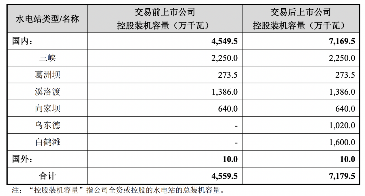 此次交易最直接的效应是装机容量增加。在交易完成后,长江电力控股总装机容量将增至7179.5万千瓦,大增57.46%。不过装机容量增加不等于发电量增加,不同电站发电利用小时数差异直接影响到发电量。