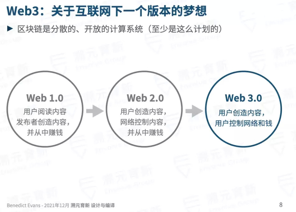 互联网已经停止增长,下一个创新点就是Web3.0,我惊讶的发现,现在的互联网人看Web3.0就和十年前的人看Web2.0是一样的,金融界副总裁表示“明年下半年泡沫就会开始破灭。互联网已经进入赢家通吃阶段,新的公司越来越难生存。”