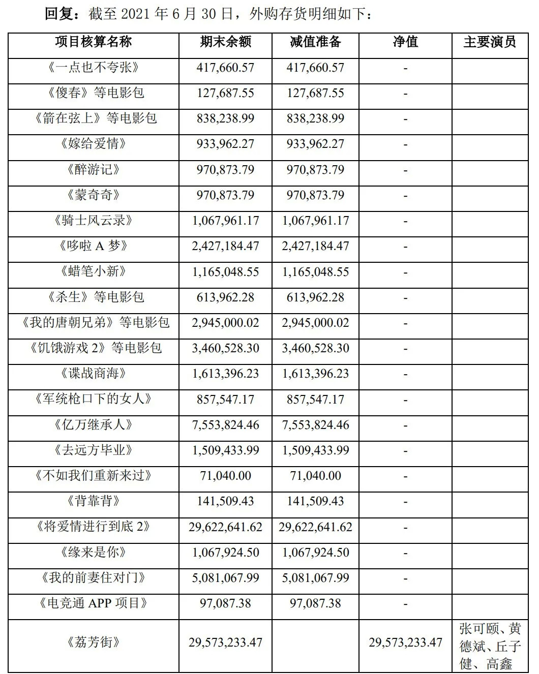 反之,也不是所有的账面资产都不需要计提减值。比如当代东方在回复函中披露,公司对综艺《中华好诗词》投资2609万,但该项目的系列作品目前止步于2018年,至今已经断档3年。另外,当代东方向河北卫视某专题广告支付2000万,但该项目因政策原因至今未能执行。