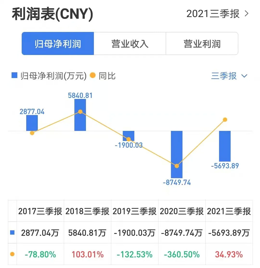 然而,从财报来看,尽管当代东方在2020年净利润扭亏为盈,但其净资产至今仍未转正。更严重的是,根据当代东方最新发布的2021三季报,截至今年9月底,当代东方净利润为-5694万元,再度陷入亏损。