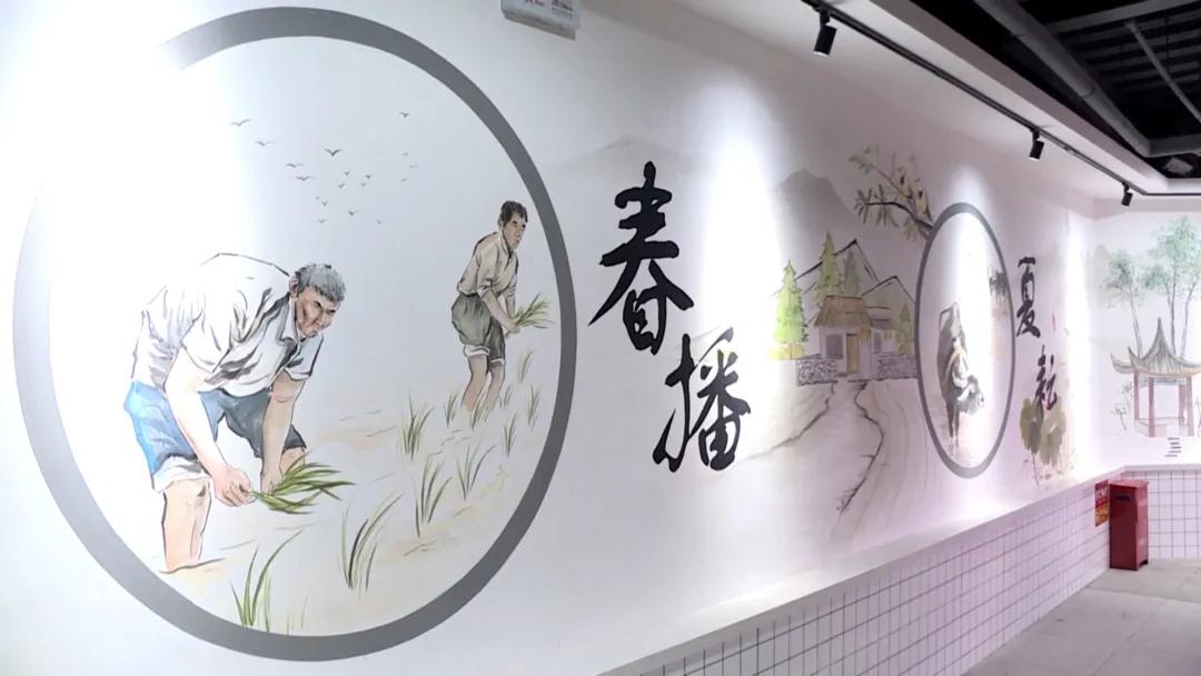 此次改造,梅川农贸市场在不改变原传统菜场格局的情况下,优化分区设置。绿色对应蔬菜摊位,粉色对应禽蛋、肉类摊位,蓝色对应水产摊位,三色分区让市民进场就能一目了然。市场里的墙面上还画上了春播、夏耕、秋收、冬藏等墙画,立柱上,对应不同的摊位画上了蔬菜、鱼、鸡鸭等墙画,增添了烟火气和文艺范儿。“我们一来就看到了,画得很好,很有创意,我们都拍照晒朋友圈了。”摊主王女士经营禽蛋,她的立柱上就画着一幅生动的鸡的一家,让她觉得很有喜感。“画的都是农耕的场景,有房子还有独轮车,进来就有小菜场的氛围了,以前都是白墙,没有东西的。”市民金阿姨抱着小孙女看着墙画。