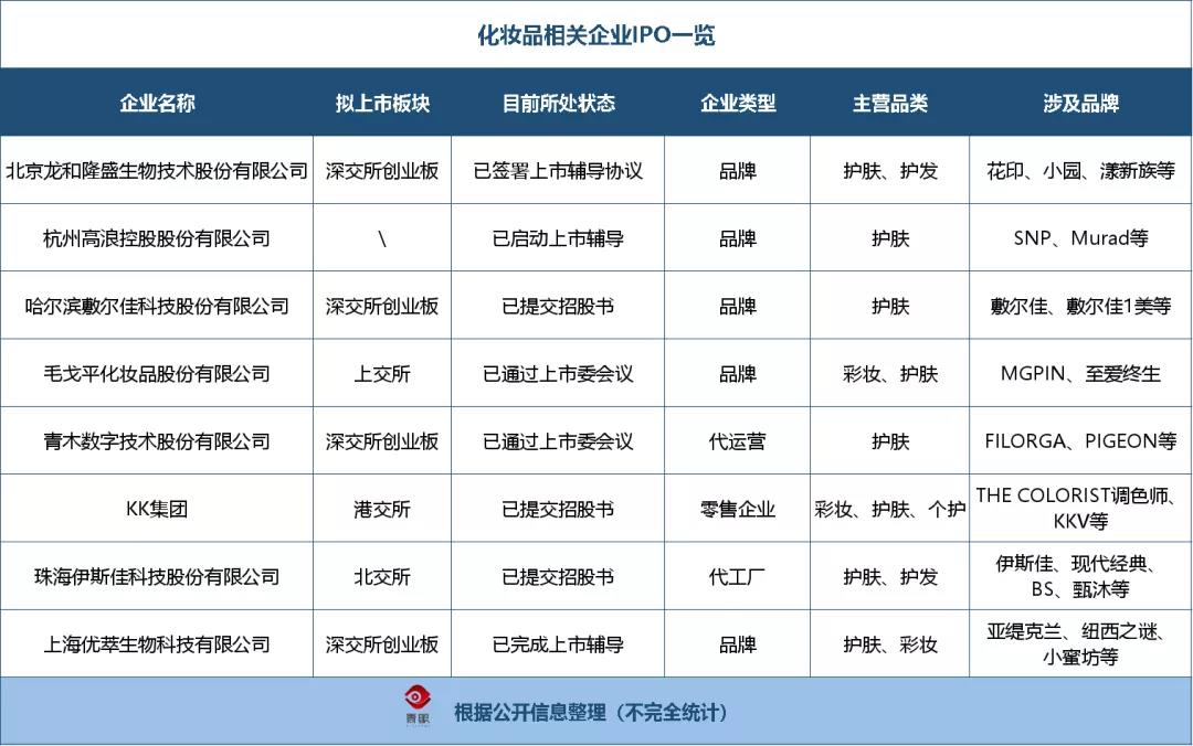 事实上,除了上述化妆品企业“后备军”外,近年来,也有不少化妆品相关企业开始了IPO之路。