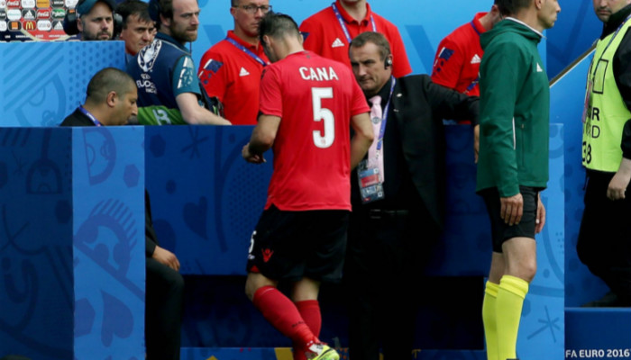 阿尔巴尼亚队长卡纳在比赛中吃到的红牌是本届赛事出现的第一张红牌。
