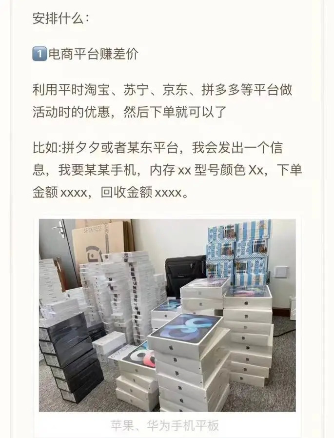 “高阶玩家”,玩法更隐蔽、风险更大,收益也更高。他们通常组建自己的“刷手”组织,利用各种优惠渠道,以低于市场的价格专门“薅”高溢价、易出售的热门商品,比如iPhone、茅台、黄金,再从“刷手”手中回收并加价转卖。“刷手”薅一笔可以获得几百甚至上千元的差价,倒卖的组织者更是收入不菲。