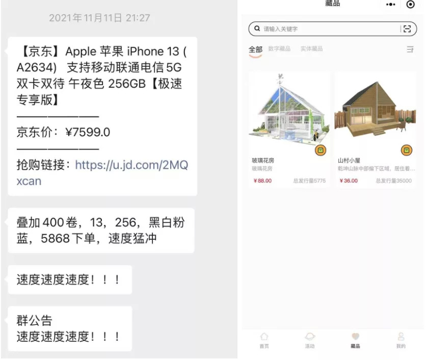 群内发布的抢购iPhone 13和元宇宙数字房子信息