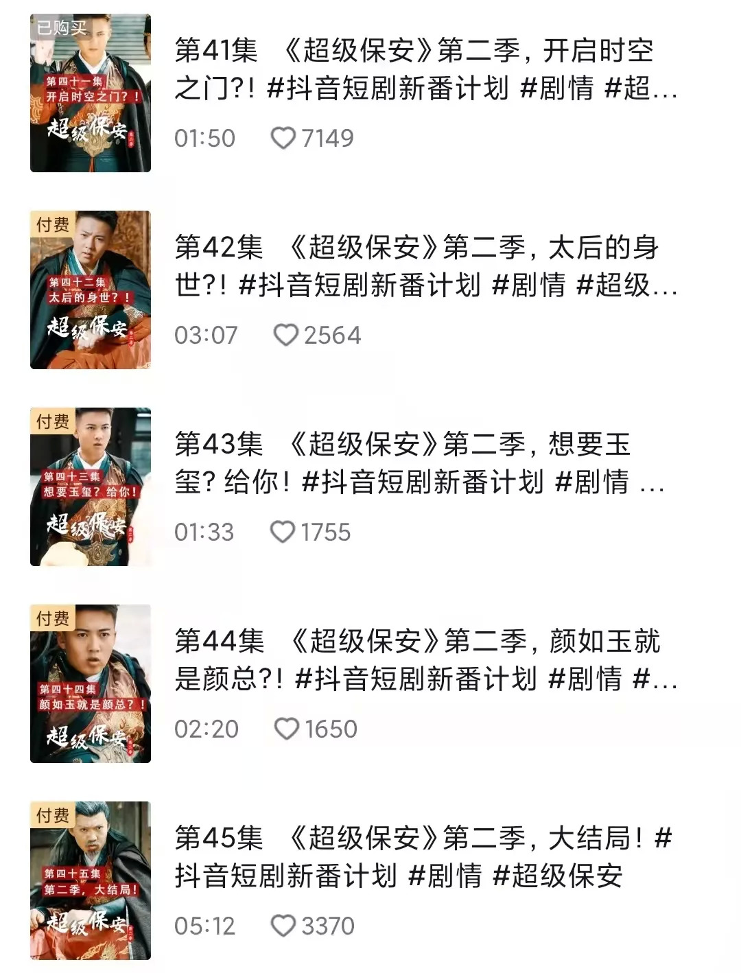 这个销量是什么概念?以对家抖音《超级保安(第二季)》为参照,11月底推出大结局试水1集1元、5集打包价4元。上线20天以来,单集点赞量最高不到8000。