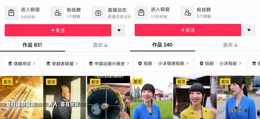 从抖音近一年的内容动态可以发现,不管是运用专业摄影技术展现农村风貌的@张同学,还是@骆王宇、@科技公元等美妆、技术各类领域达人,都在有意识地把输出的内容归类为合辑。另外像@陈小沫这样的非连贯剧情类账号,也围绕已有的暖心人设做成了系列。