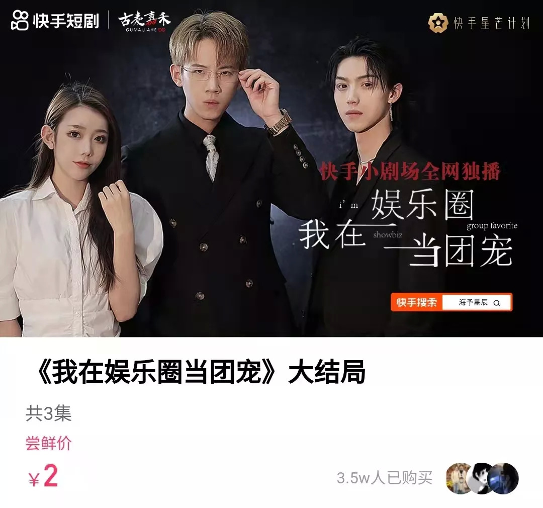 在付费短剧专栏下,快手销量最高的《<我在娱乐圈当团宠>大结局》,2元3集的打包价,半年累计售出3.5万份,算下来这部剧付费总收入约7万元,8300多人参与评分。