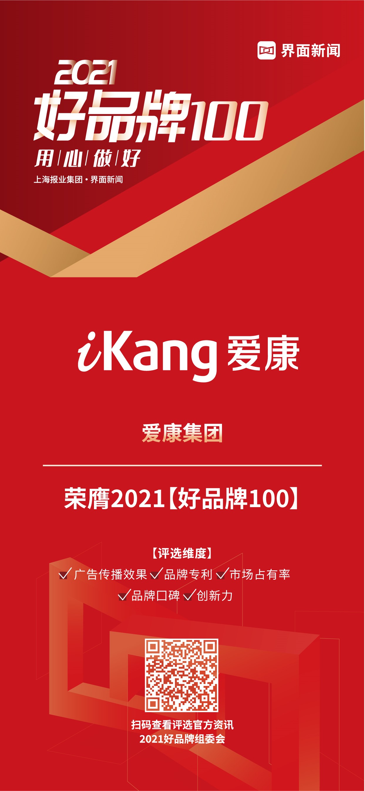上海报业集团 | 界面新闻举办2021【好品牌100】评选活动,聚集100位专家,100个行业赛道,最终评出100个品牌,持续寻找讲好品牌故事、拥有核心竞争力、持续创新、面向国际的 “好”品牌。