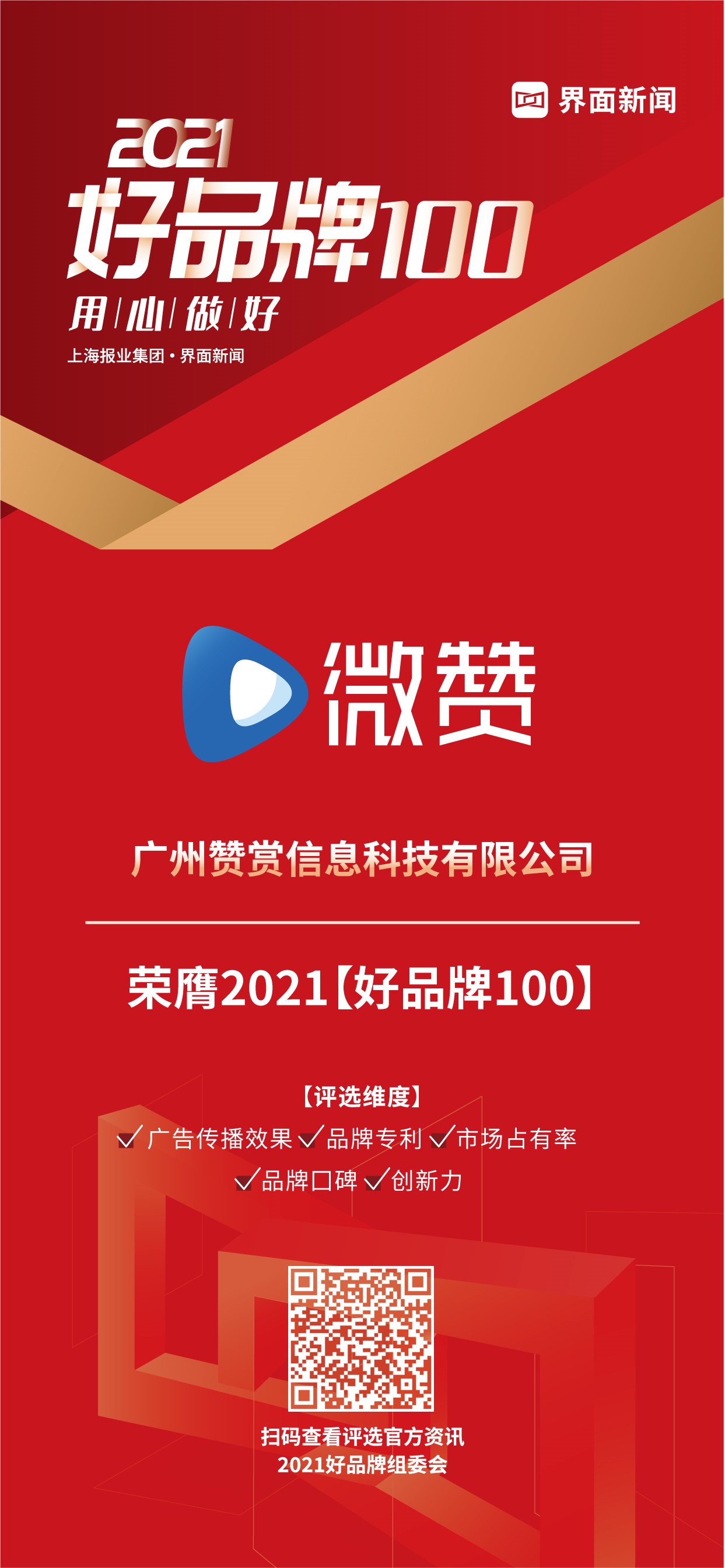上海报业集团 | 界面新闻举办2021【好品牌100】评选活动,聚集100位专家,100个行业赛道,最终评出100个品牌,持续寻找讲好品牌故事、拥有核心竞争力、持续创新、面向国际的 “好”品牌。