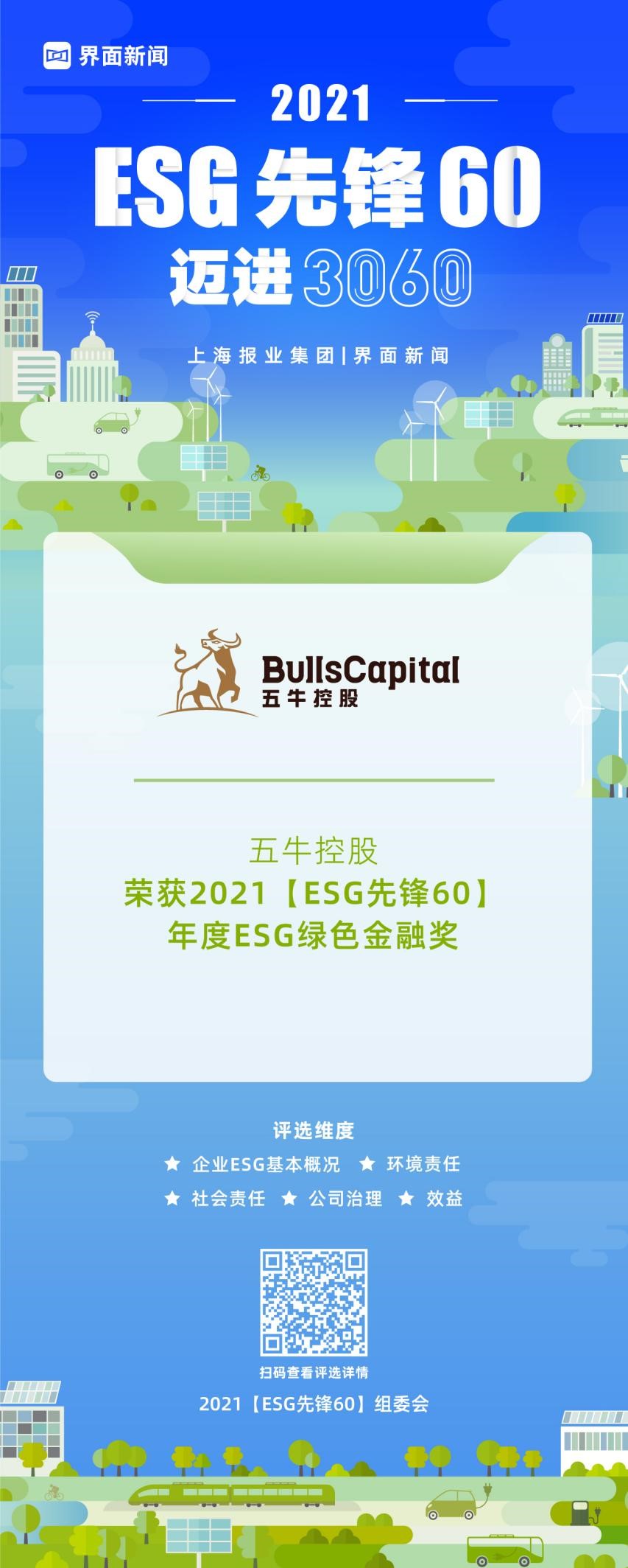 12月15日,上海报业集团|界面新闻在上海前滩香格里拉举办了2021【ESG先锋60】颁奖典礼,并正式公布了本年度获奖名单。在这项万众期待的关于ESG议题的年度评选中,来自各行各业的50家绿色先锋企业与10位先锋探索人物,凭借年度市场表现与行业影响力,获得年度大奖。其中,五牛控股凭借其在行业内的优异表现,荣膺年度ESG绿色金融奖。