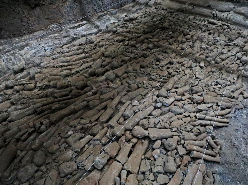 在江村大墓的四周,考古人员发现了115座外藏坑,这些外藏坑围绕着江村大墓呈放射状分布。经国家文物局批准,从2017年开始,考古人员对其中8座外藏坑进行了考古发掘,出土了着衣陶俑、陶器、铁器、铜器等大量汉代文物,同时还发现了“石围界”和门阙基址等陵园设施。他们在这些外藏坑中发现了明器官印,官印上的文字为“车府”“中司空印”等,官印是官署权力的象征。外藏坑围着江村大墓转一圈,相当于一百多个官署机构围绕墓葬分布。在接受央视采访时,陕西省考古研究院研究员马永赢表示:“一百多个官署机构围绕着中间的墓,所以这个墓主只能是皇帝。”