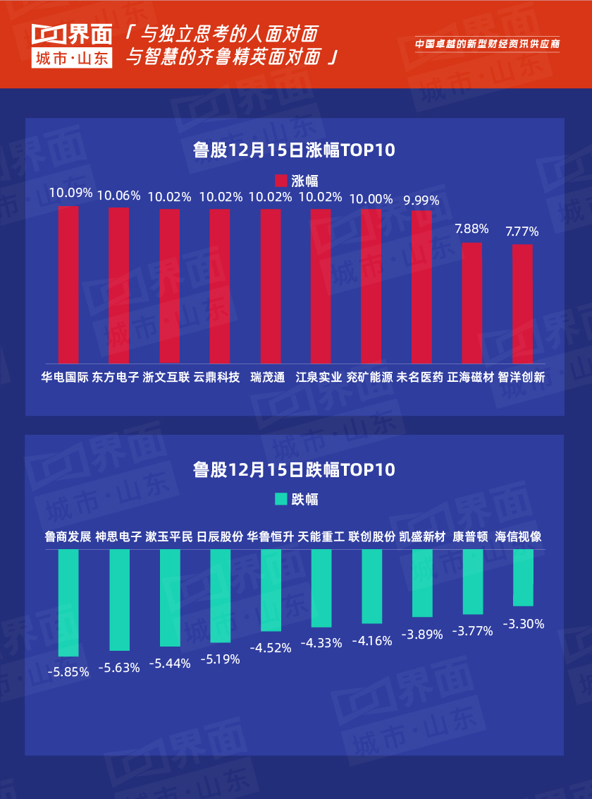 受大盘影响,12月15日,山东省内沪深股票有122只个股上涨,127只下跌,华电国际领涨。