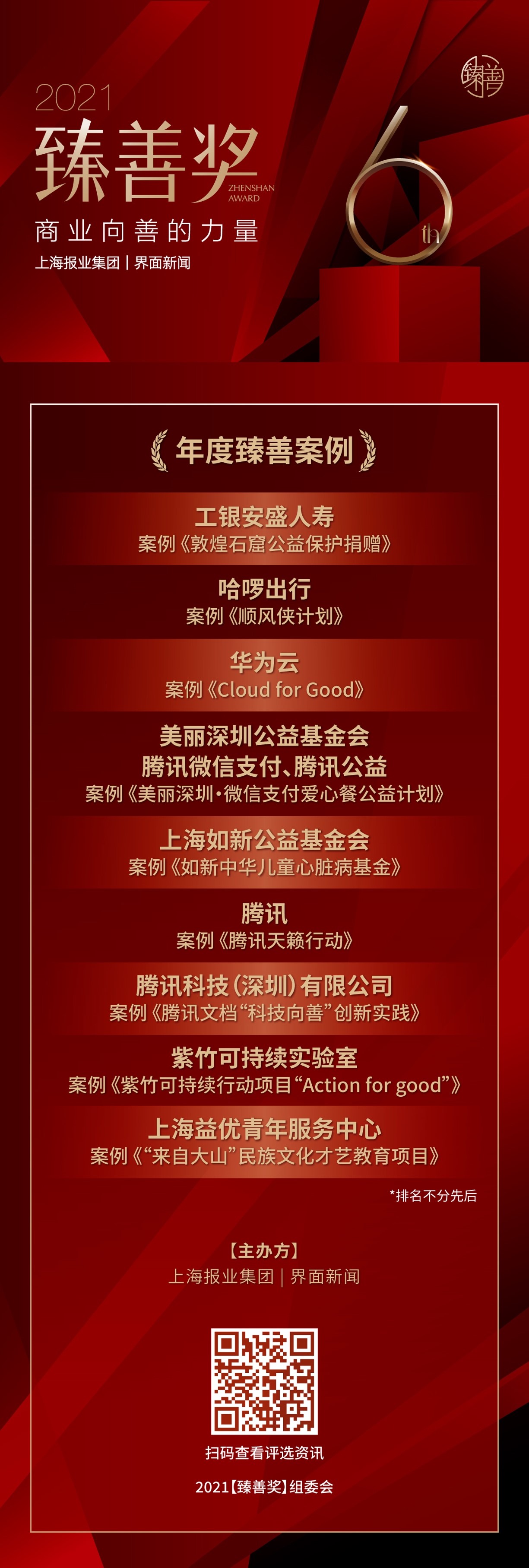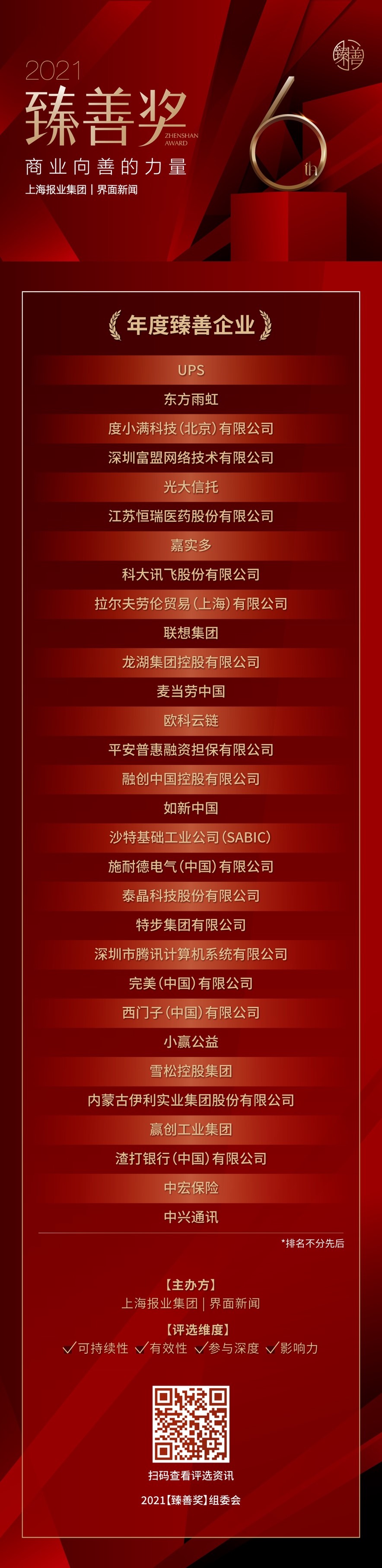 经历了为期数月公正、公开的严格评选,最终,共有30家企业荣获“年度臻善企业”大奖,5位企业领袖获评“年度臻善领袖”,9则优秀案例获评“年度臻善案例”。