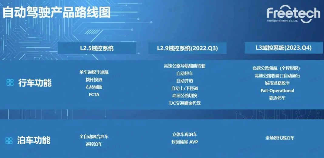 很多人可能没有听过这家公司,但 Freetech 在 2016 年便已经成立,目前在算法、计算平台方面均有技术突破,今年第四季度,他们的第一代域控制器将会进行 SOP,可以实现 L2.5 级别的驾驶辅助。