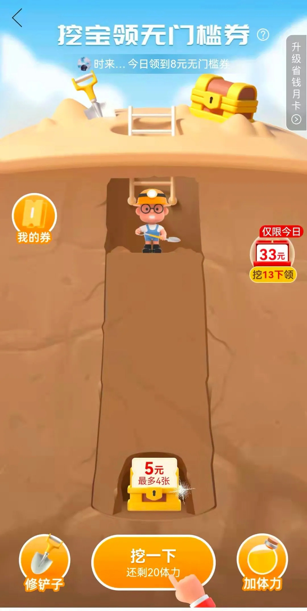 拼多多用户要领取5元无门槛券需要挖宝,图源 / 拼多多