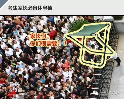 然后就有一些骑着电动车的商家来兜售折叠椅,饮料和食物。根据一个高考考点学校的保安人员介绍,高考两天,看到上百来兜售折叠椅的电动车,几乎每个车子都能卖光存货,而兜售饮料的商家,几乎挣得彭满钵满。