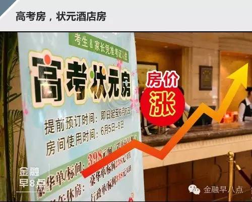 不仅如此,高考房也有了各种奇葩的名字:状元房、风水房、满分房等等,酒店的台阶也有了讲究,一阶是“一步登天”,二阶是“平步青云”,三阶是“步步高升”。