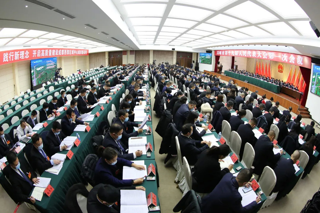 12月15日上午9时,邛崃市第十九届人民代表大会第一次会议举行。市长王德彰作政府工作报告。