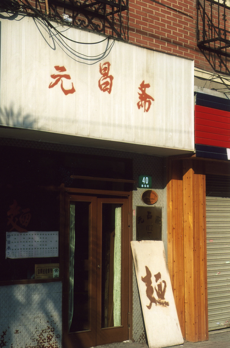 当代日常生活中的书写中,有时也能见到一些出自训练有素之手的字迹。也就在2003年1月,我在上海雁荡路散步时,见到一个叫元昌斋的饭馆门前放着一块招徕顾客的牌子,上面用红油漆写着“面”字。字是繁体,用笔也很是流畅,一望便知书写者有相当的书法素养。