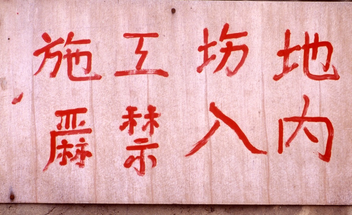这块牌子上的书写引起了我的注意。当时没带照相机,打算过一两天再来拍照。谁知,接下来的几天不是阴天就是下雨,返美行期渐近,我开始为能否拍下那块临时性的牌子担心起来。2003年1月初的一天,天气终于放晴,坐车赶去,见牌子还在,心里放下一段牵挂,立即把牌子摄下。虽说这件事情发生在一个大都市,当时我却想起了前面引过的三百多年前顾炎武在《金石文字记序》中关于他访碑的那段描述,格外会心: