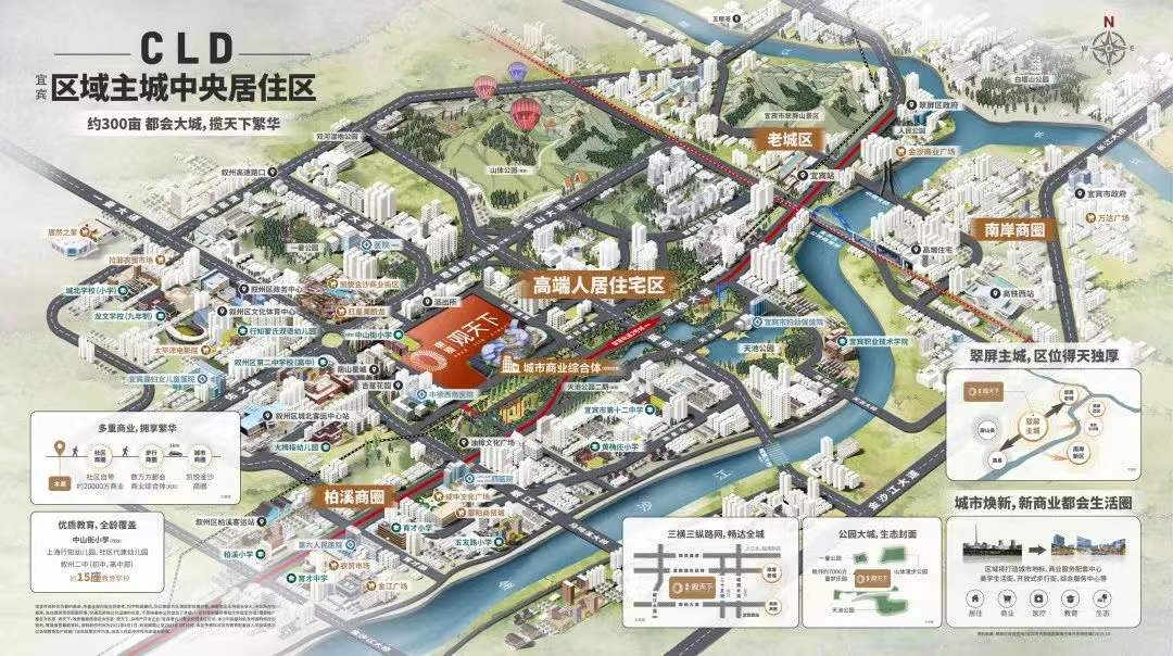 项目地处宜宾南大门核心发展区域,站在城市运营的高度,尊重宜宾属地文化及城市脉络,于翠屏主城之上,尽享城市发展利好。以现代度假风格,精工打造建面约80-105㎡学府洋房社区,以300亩大城全业态规划打造低密社区。